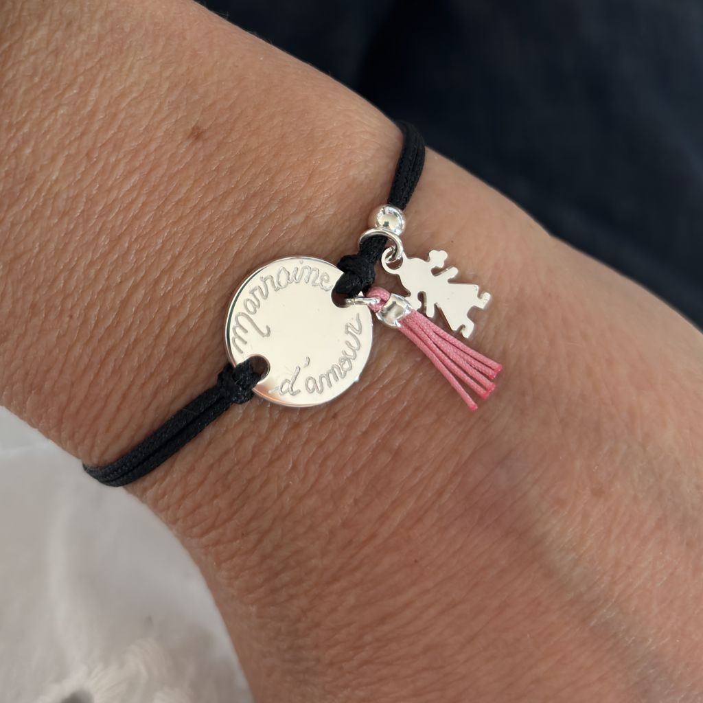 Bracelet livré dans un sachet en organza Maman m'a dit..., pochette cadeau et chamoisine en option.
