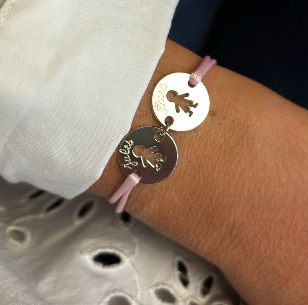 Bracelet 2 médailles rondes filles garçons ou coeur. Possibilité d'ajouter des médailles avec supplément.