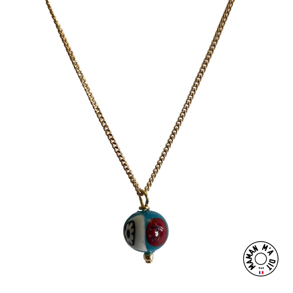 Collier sur chaîne 38 cm ras le cou et perle de Murano véritable (rapportée de Murano :)