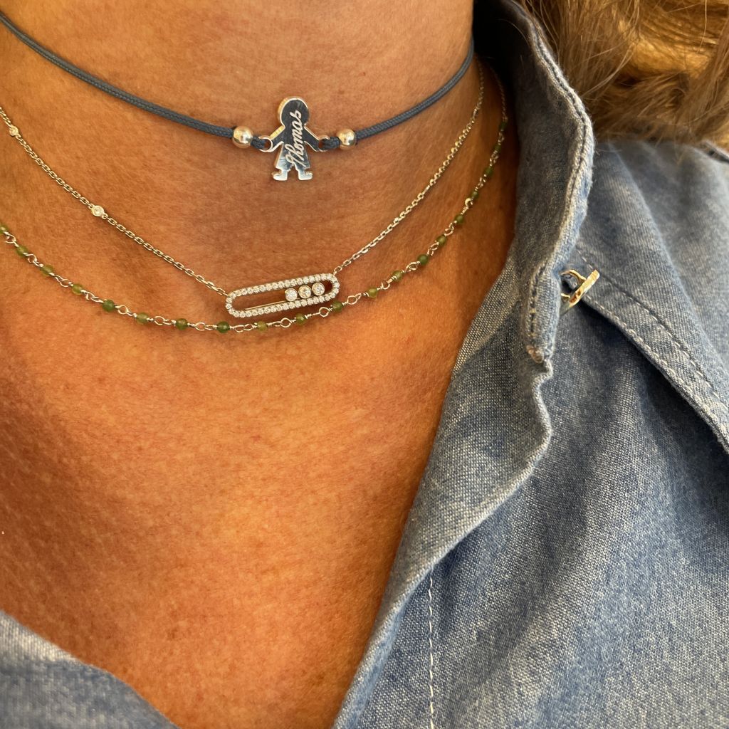 Finition comprise : polyester 3 perles dans la nuque pour ajuster facilement la hauteur du collier.)