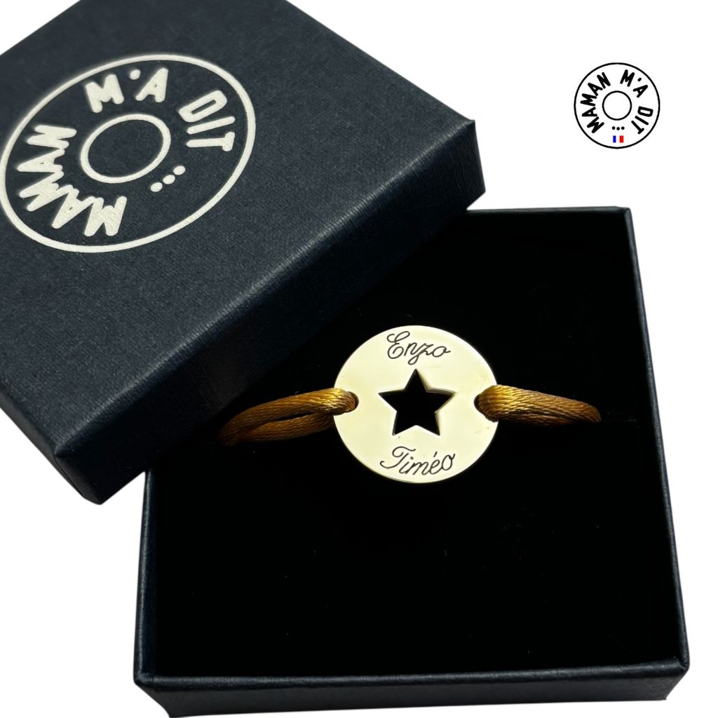 Bracelet cible étoile 20 mm possibilité de graver un prénom ou une date (gravure à la main offerte, laser avec supplément)