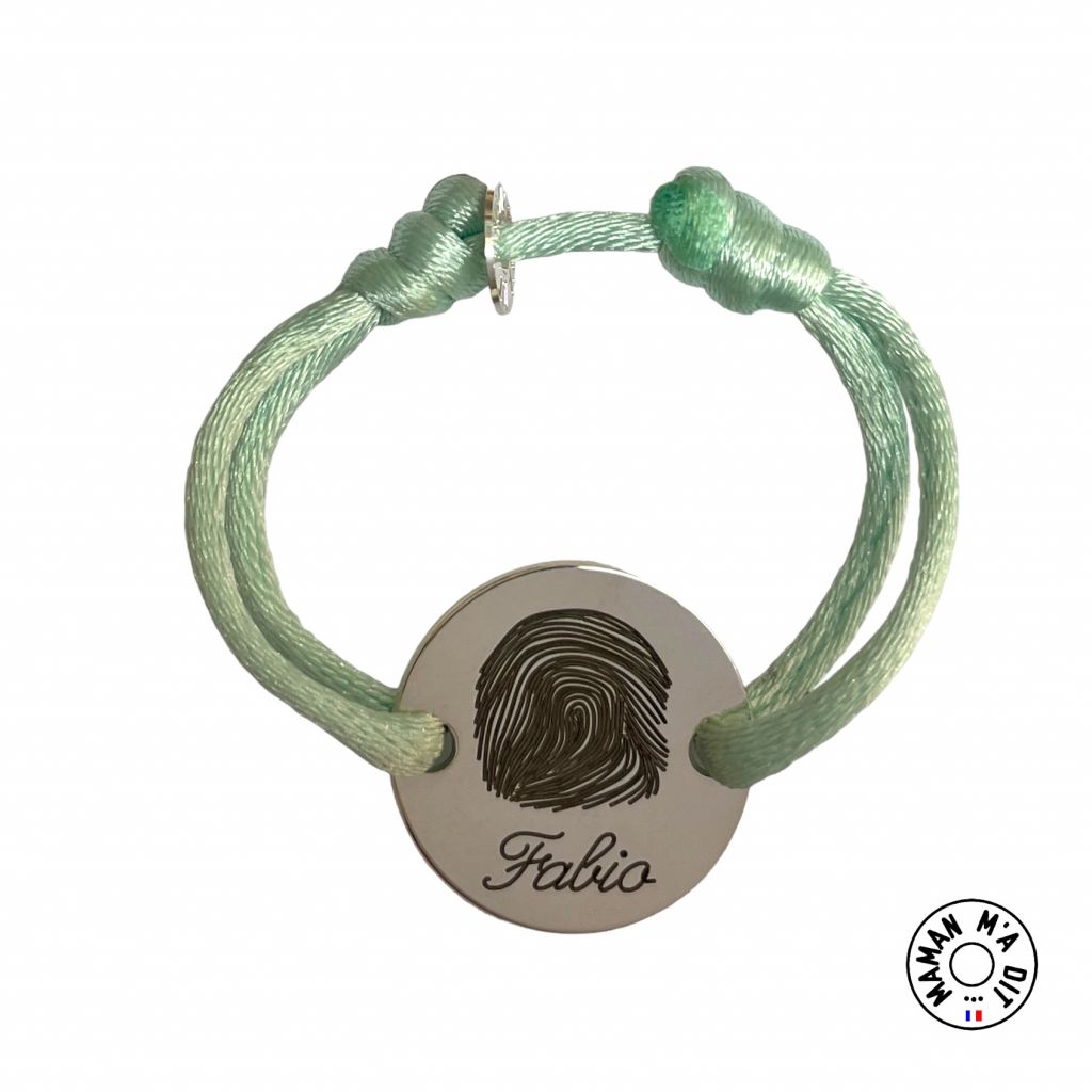 Bracelet jeton 20 mm, empreinte et prénom au choix.. gravure noircie comprise